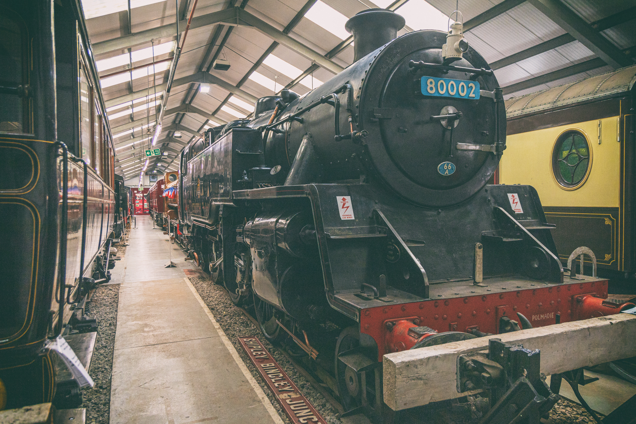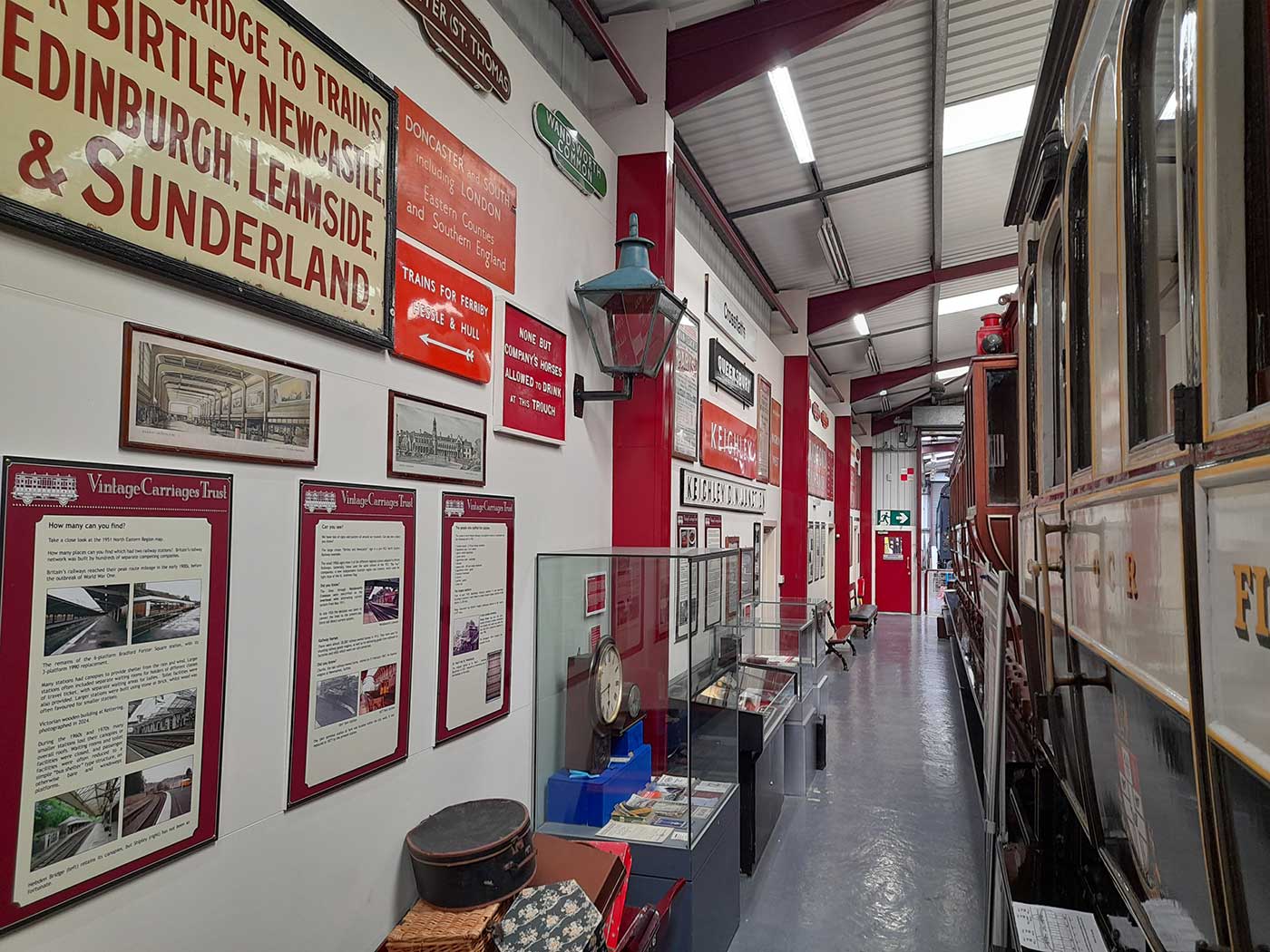 The Carriage Works holds the Vintage Carriages Trust’s collection of historic railway carriages, an industrial steam locomotive, and a large collection of railway signs and memorabilia.
