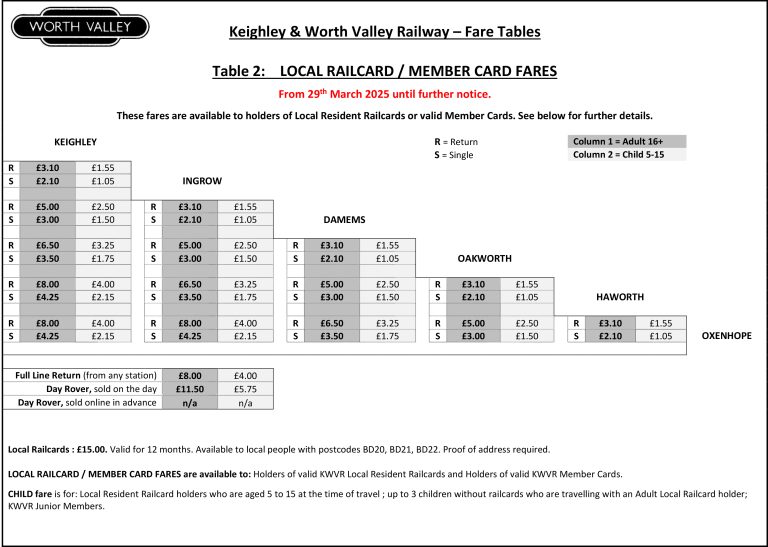 A Day Rover is perfect for travelling and exploring the Worth Valley, with unlimited travel for the whole day on all trains running. A Day Rover includes free entry to the award-winning ‘Carriage Works’ and ‘Engine Shed’ museums, both at Ingrow West Station.