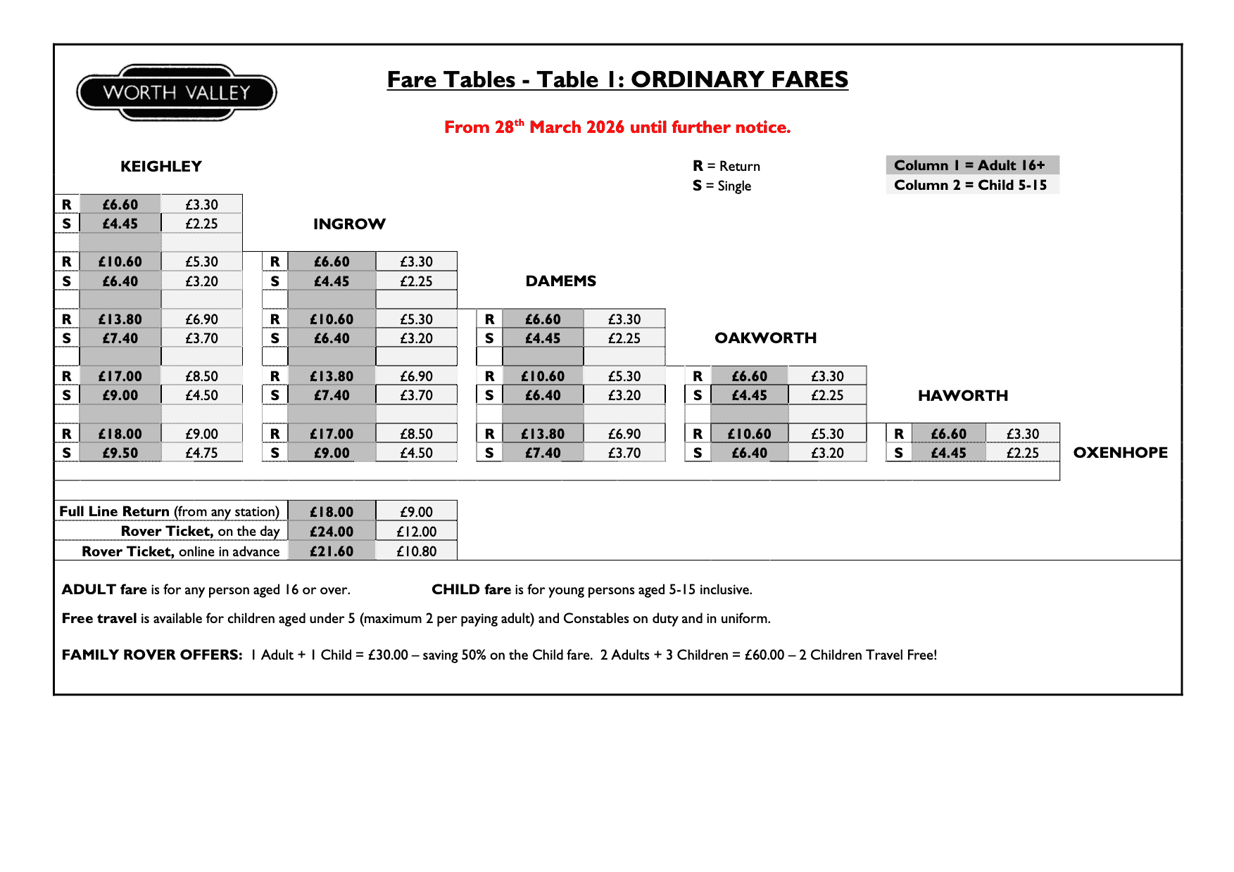| Children (5-15) | £11.50 | £10.35 |
