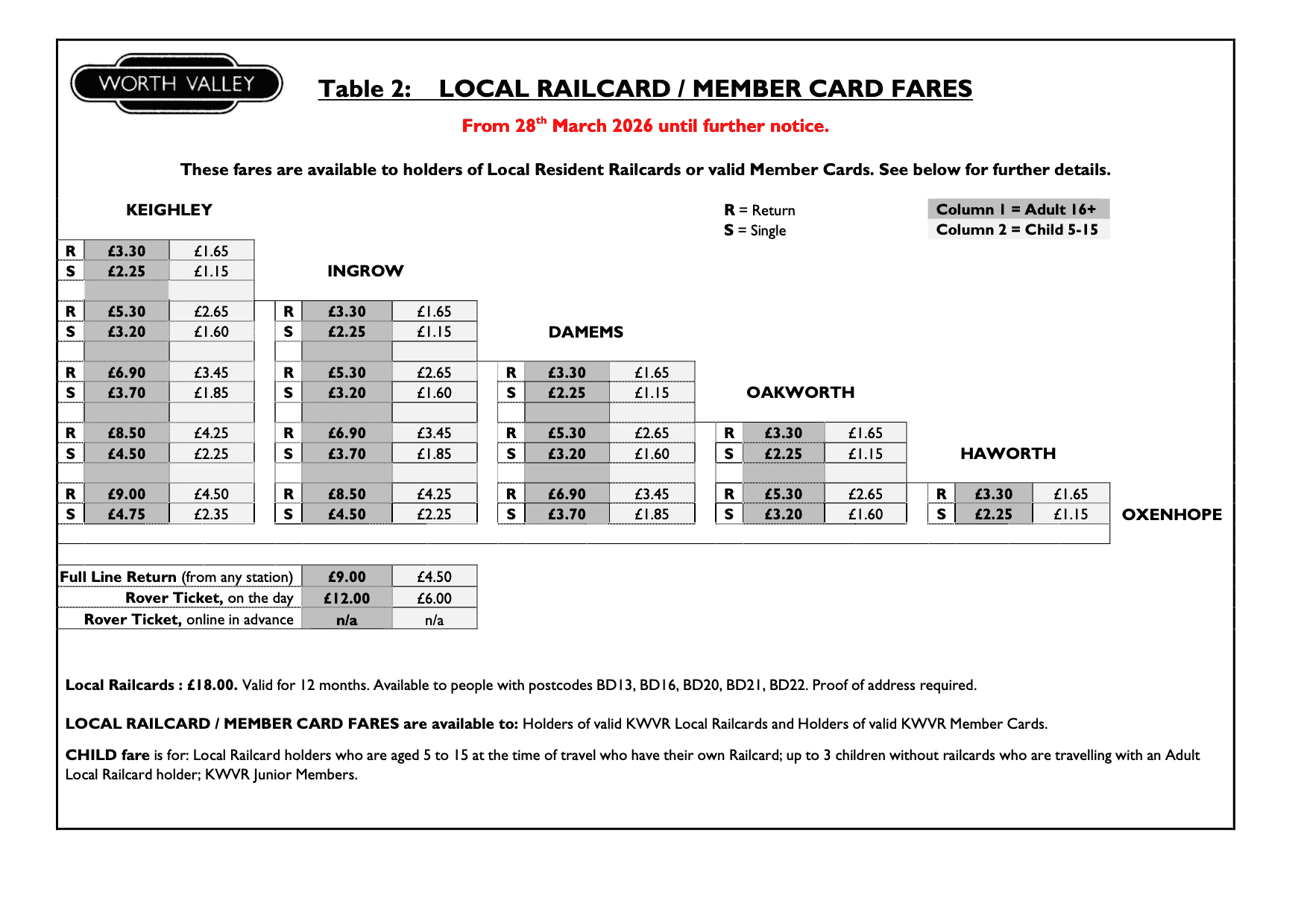 | Adult | £16.00 |